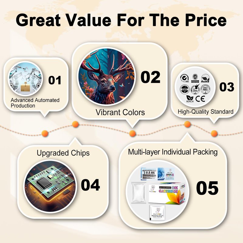 - 🚚【24 Months Warranty】 MS Deer 225 226 Ink Cartridges are manufactured in a professional facility with ISO9001, ISO14001, RoHS, REACH, and STMC certified. All mg6220 ink cartridges are strictly inspected before leaving the factory.