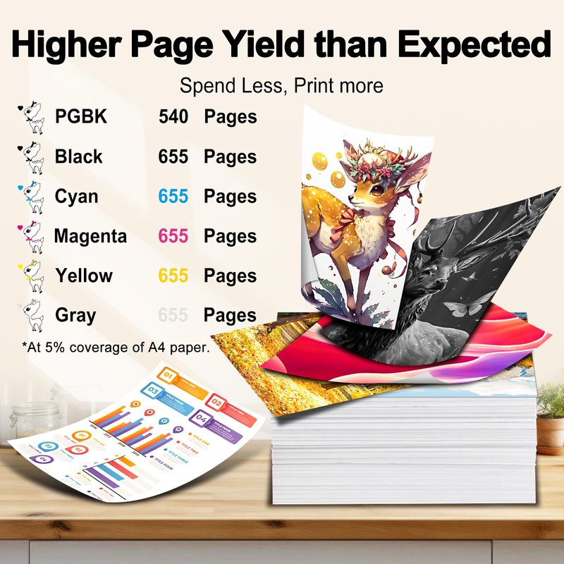 - 📚【High Page Yield】Up to 540 Pages per PGI225 large black cartridge, and 655 Pages per CLI226 Small Black/ Cyan/ Magenta/ Yellow/Gray ink cartridge (at 5% coverage of Letter/A4).