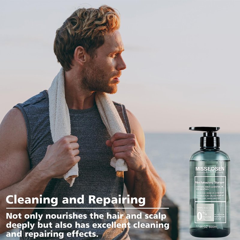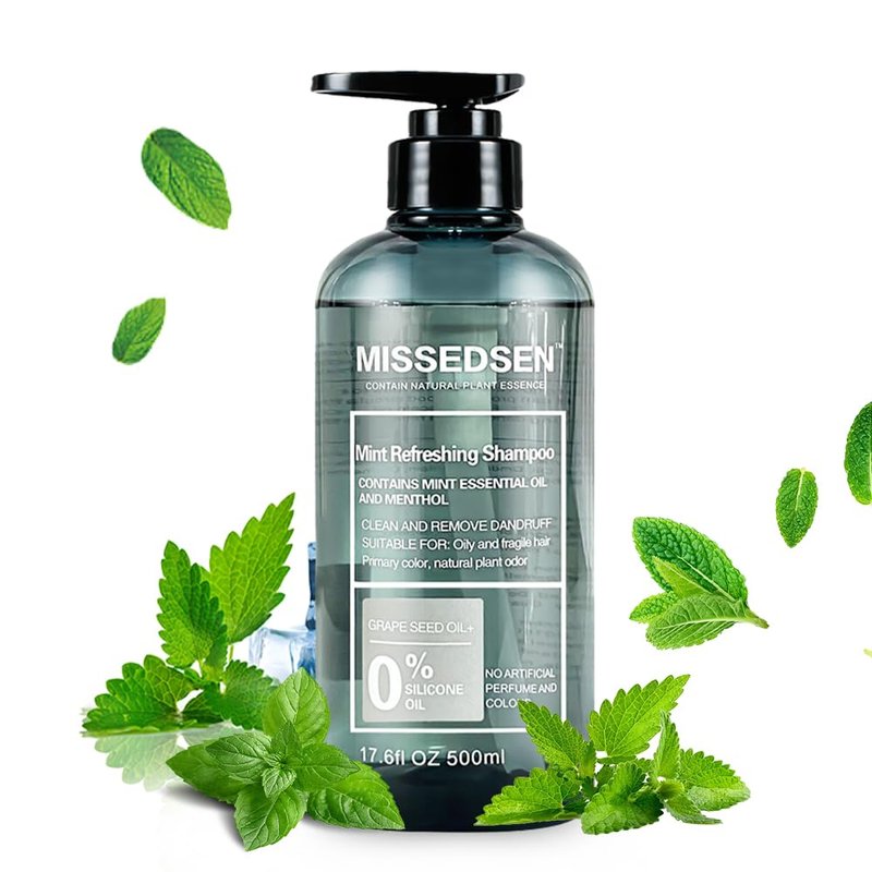 MISSEDSEN Mens Shampoo for Organic Mint Shampoo for Straight, Curly, Thick, or Thin Hair Deep Cleansing Nourishing and Strengthening Invigorating Scent 17.6FL.OZ (500ML)