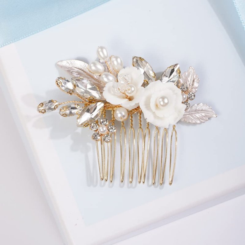 - Material:Alloy,Imitation pearls,Rhinestones,ceramic flowers