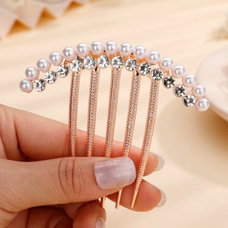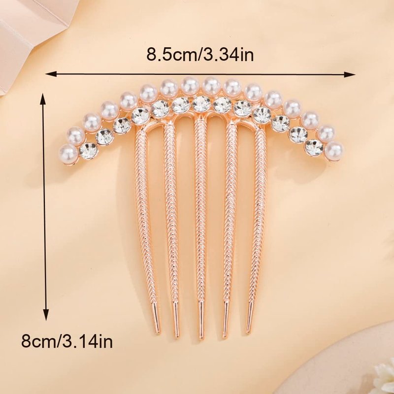 Missgrace Luxury Glitter Sparkly Crystal Rhinestones Pearls Gold Hair Side Combs Hairpins Barrettes Clips Hair Accessories for Women Girls (Color 2)