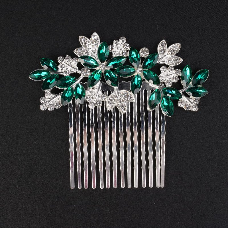 - Wedding Rhinestones hair comb ,Color :Silver Green