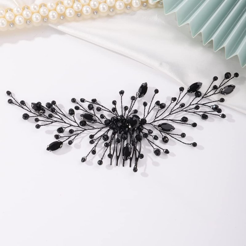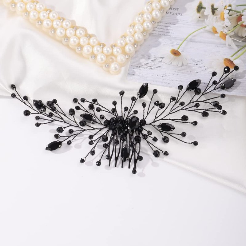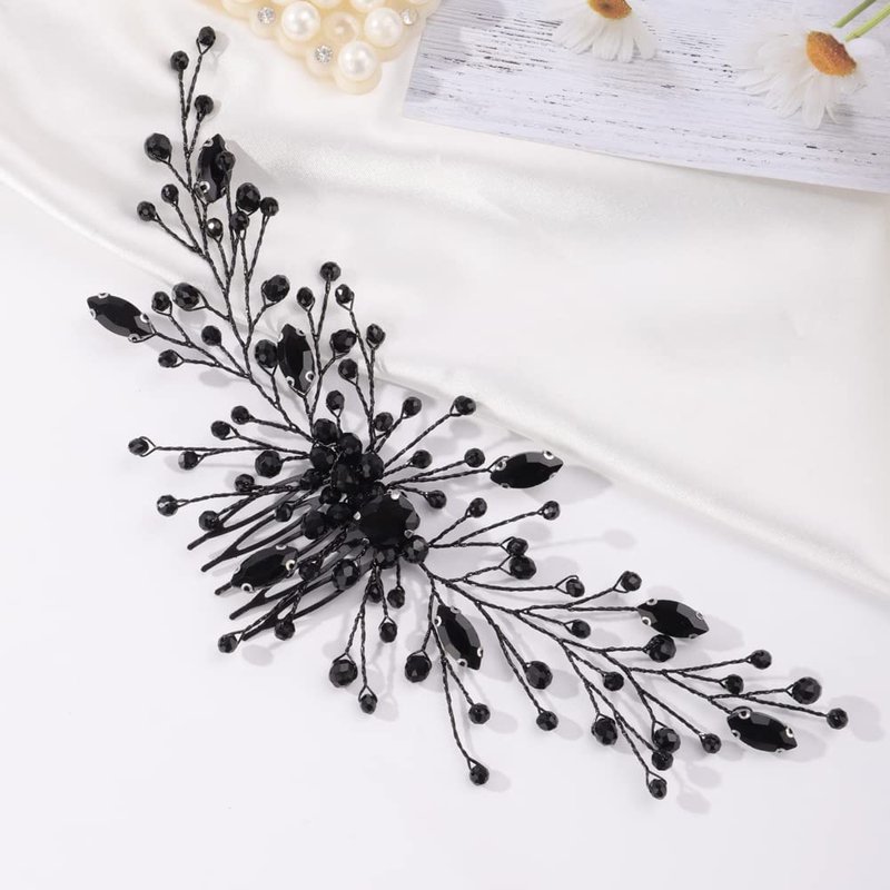 Missgrace Women's & Girls' Special Occasion Hair Comb, Black Metal, Full Rhinestones Side Hair Comb, Perfect for Prom, Party, Wedding Hairstyle, 22cm (8.6")