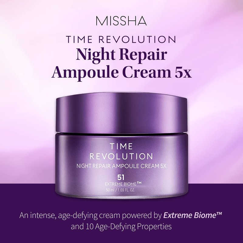 MISSHA Time Revolution Night Repair Ampoule Cream (5th Gen) 1.69 Fl Oz - Triple Fermented Deep-Sleep Night Cream - Overnight Repair for Enhanced Radiance, Korean Skincare