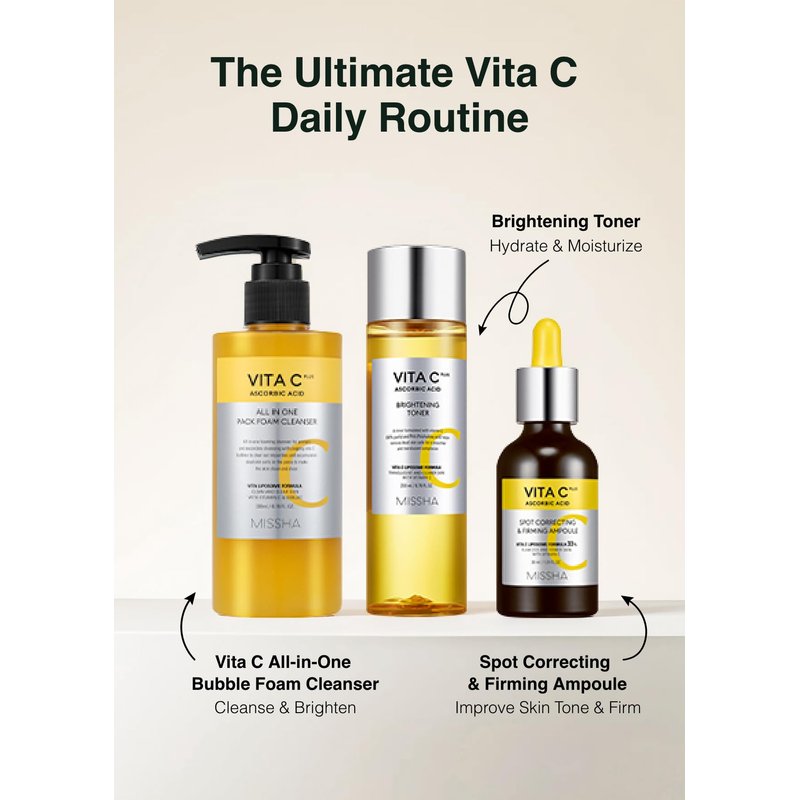 MISSHA Vita C All-In-One Bubble Foam Facial Cleanser 6.76 Fl oz / 200ml- Deep Pore Detox, Magic Bubbles with 99% Pure Vitamin C, Korean Face Wash - Removes Impurities, Makeup, Blackheads, Whiteheads