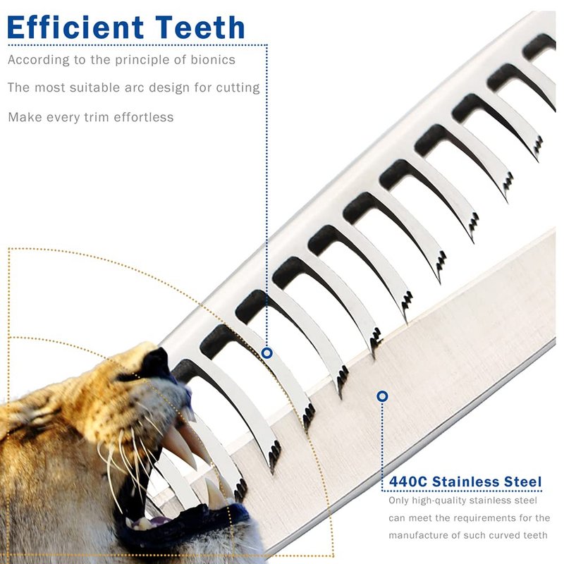 Curved teeth technology is the best choice to avoid hair got caught in blades, while only high-quality steel like Japanese 440C stainless steel can reach the goal, as it's so strict on steel quality.