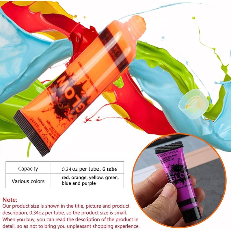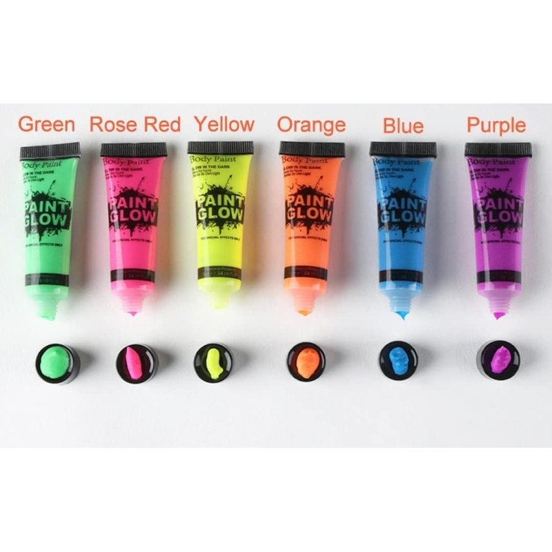 MISTER ART Glow in Dark Face Body Paint UV Blacklight Neon Fluorescent 0.34 oz Set of 24 Tubes