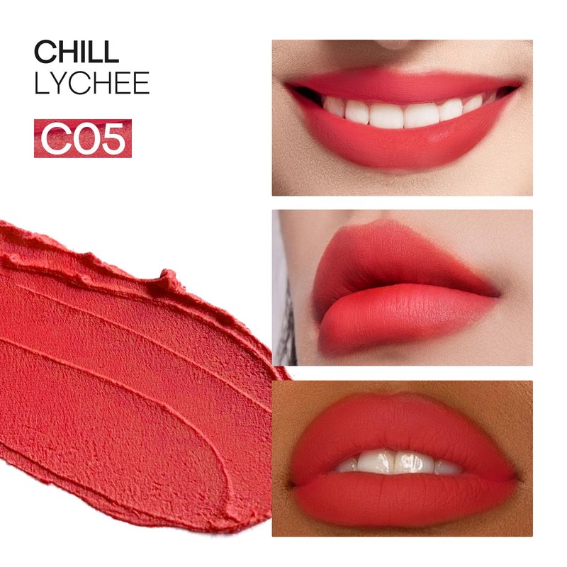Mistine Lipstick Thai Latte Sheer Creamy Rouge Velevt Matte Lipstick for Women Non-sticky Lipstick C06 Chill Lychee 0.123oz 1 Count