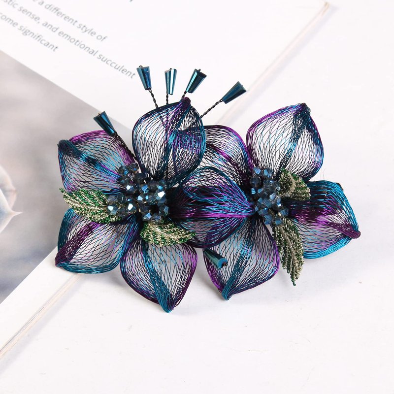 Mistofu 3.93Inch DIY Copper Wire Metal Hand-woven High-level design Barrettes Elegant Hair Accessories, Gifts for Women Girls (Gradient double flower)