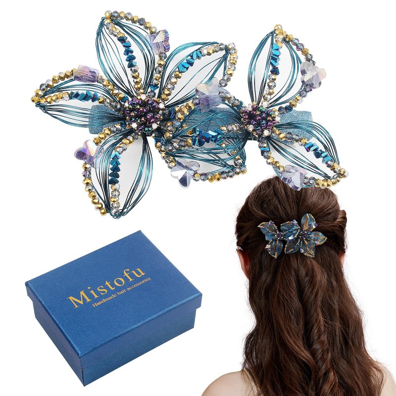 Mistofu Copper wire metal  butterfly Bow hair clips,Large barrette in flower design decorated with sparkly crystals and colorful beads. French Design ,Suitable for all kinds of hairstyles.Hair accessories for womens,The material is soft durable, Exquisite gift box packaging