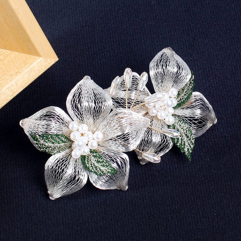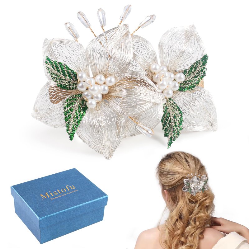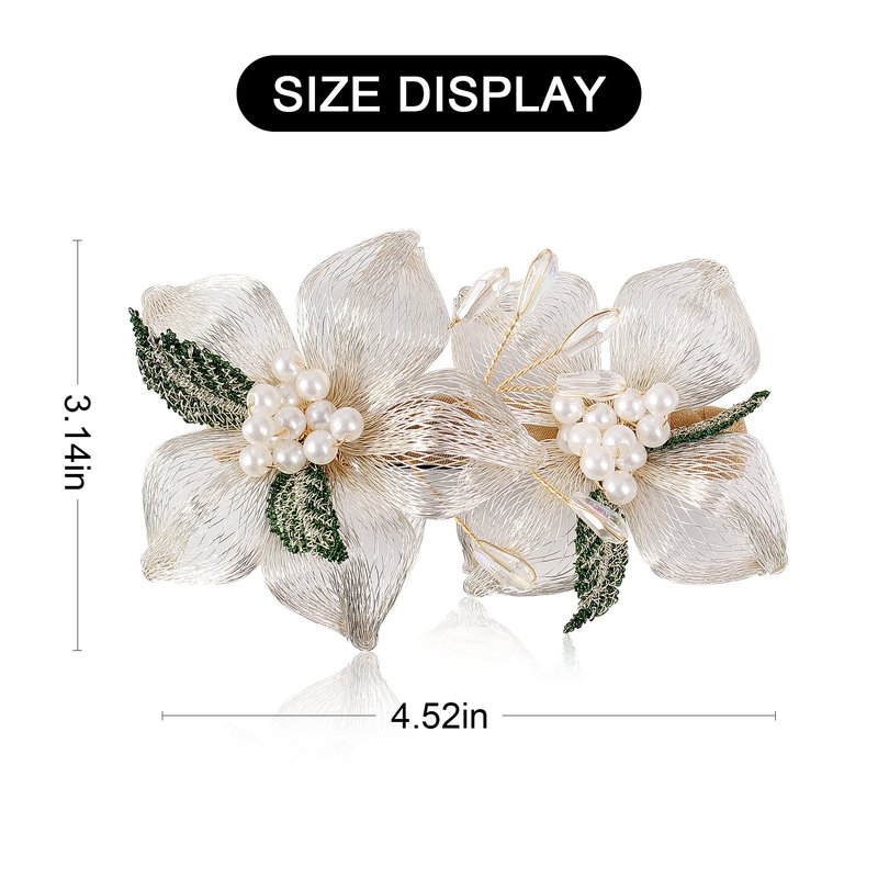 Mistofu DIY Copper Wire Metal Hand Woven Wedding Hair Accessories 3.93inch High-level design Barrettes Elegant Gifts for Women Girls (White gradient double flower)