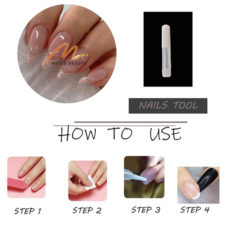 3.Select a right size of the nail, apply the glue to the back of the nail and put it on your fingernails.