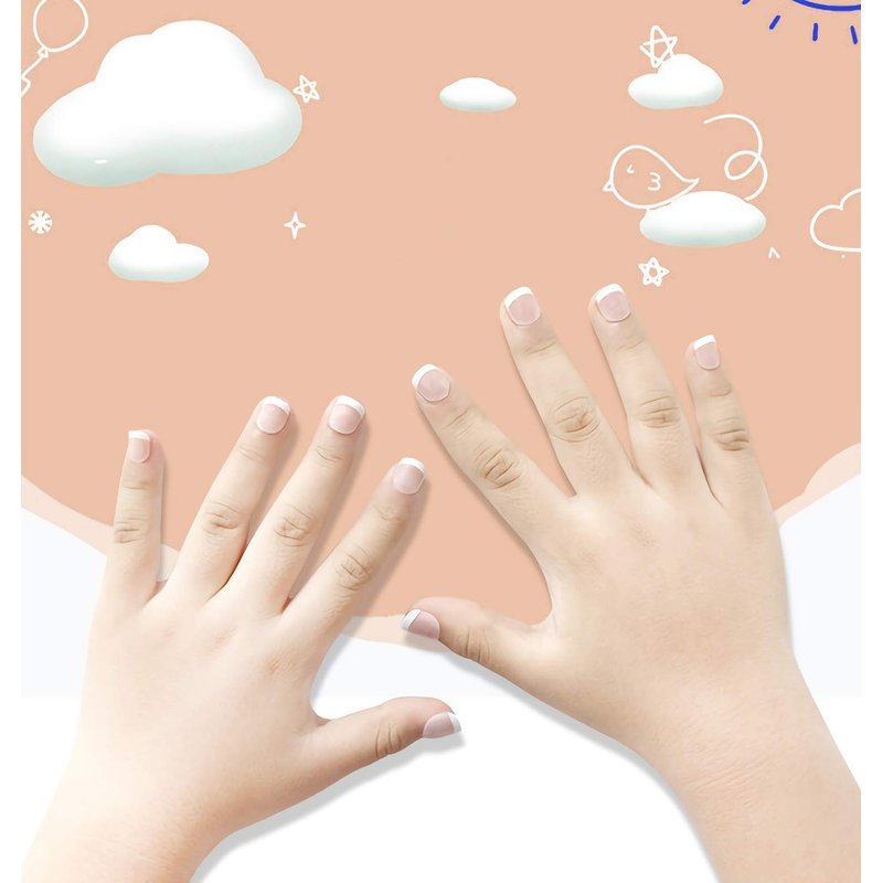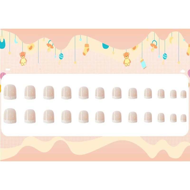 MISUD French Fake Nails 24pcs Classic Natural Pre-Glued Short Square Shape with Shiny Edge False Nails for Kids and Teen Girls Full Cover Artificial Nails