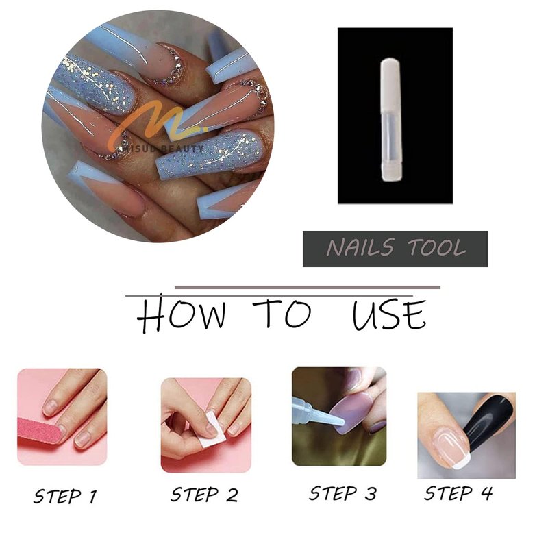 3.Select a right size of the nail, apply the glue to the back of the nail and put it on your fingernails.