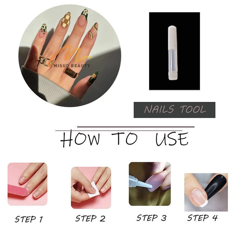 3.Select a right size of the nail, apply the glue to the back of the nail and put it on your fingernails.