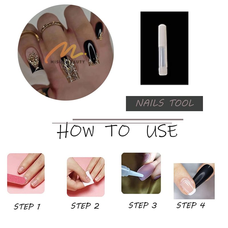 3.Select a right size of the nail, apply the glue to the back of the nail and put it on your fingernails.