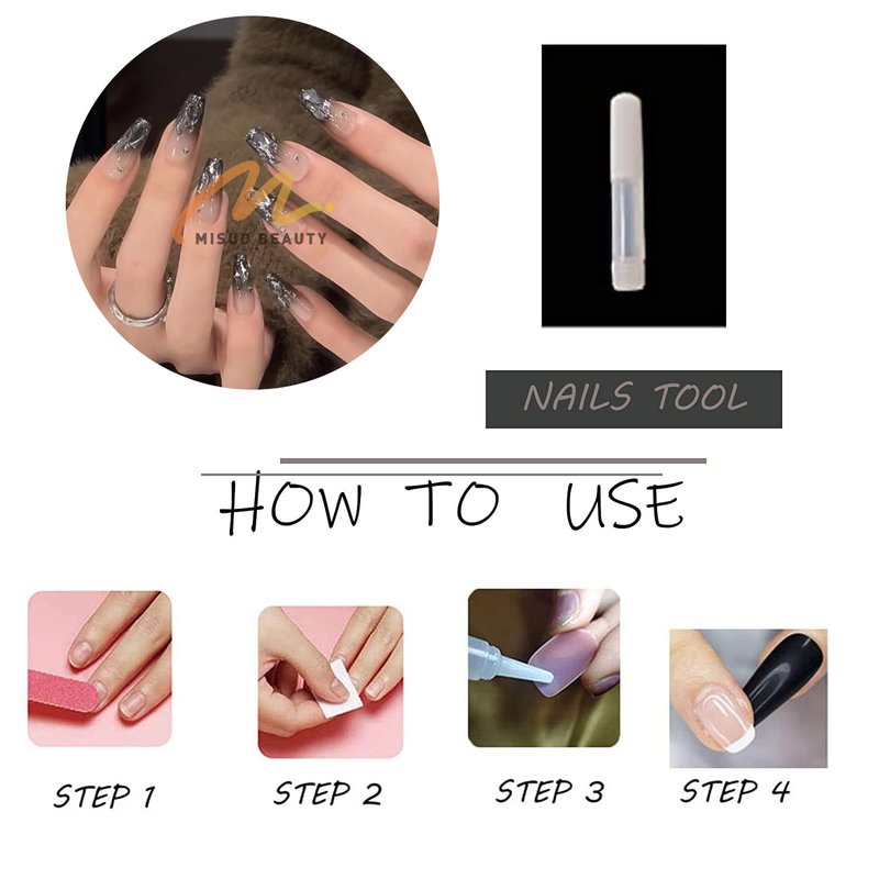 3.Select a right size of the nail, apply the glue to the back of the nail and put it on your fingernails.