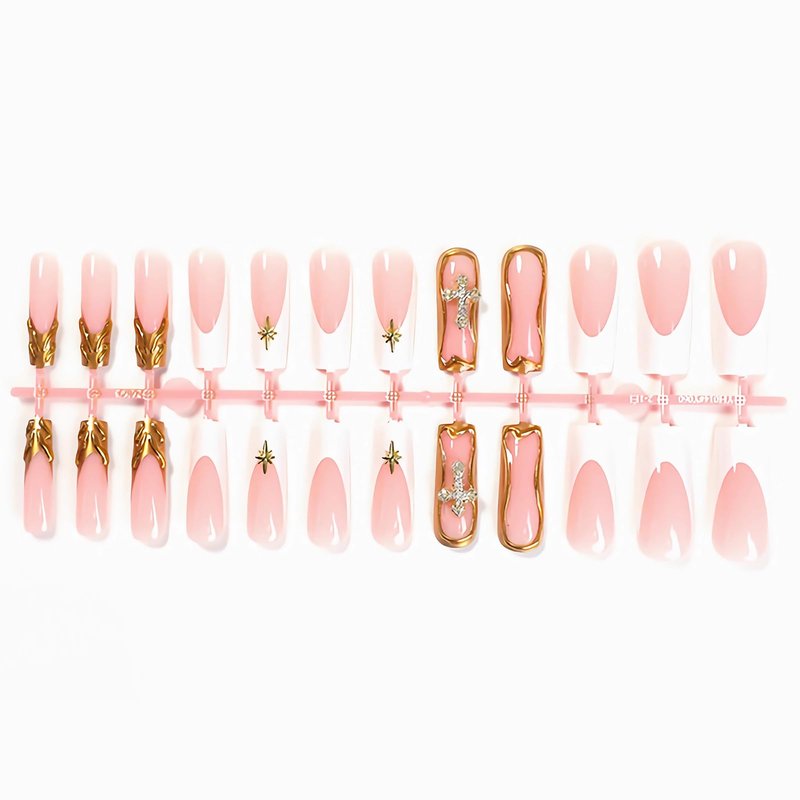 - 【Unique Design】 According to the most popular elements of the moment, these long square press on nails are designed with 3d gold french tip and luxury cross diamond.