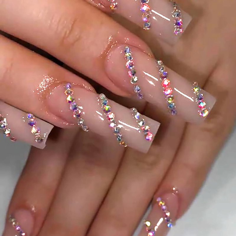- 【Unique Design】 According to the most popular elements of the moment, these long square press on nails are designed with nude gel and luxury diamond.