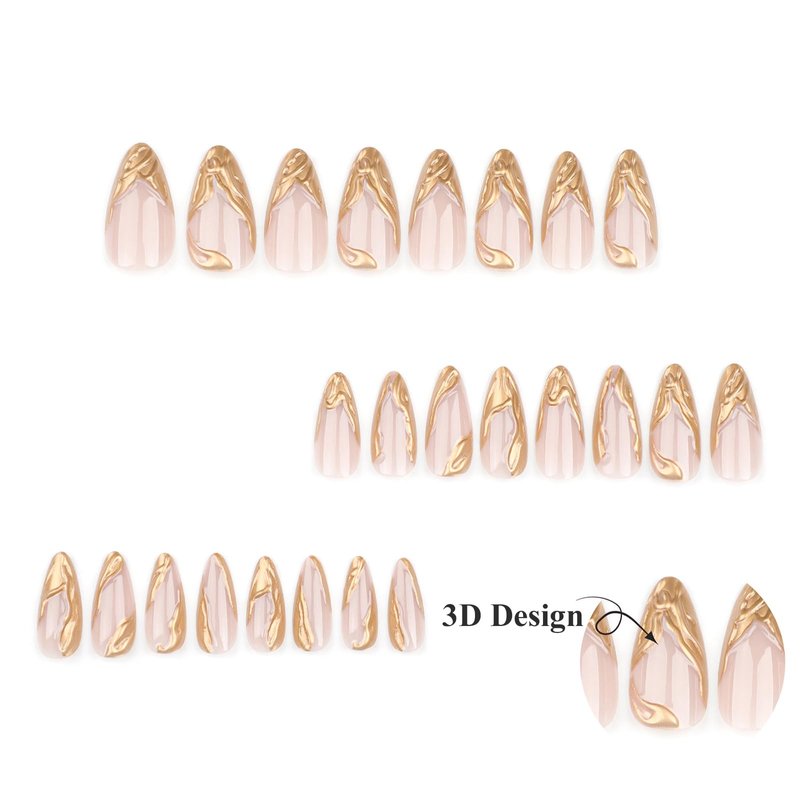 - 【Unique Design】 According to the most popular elements of the moment, these medium almond press on nails are designed with 3d gold chrome french tip.