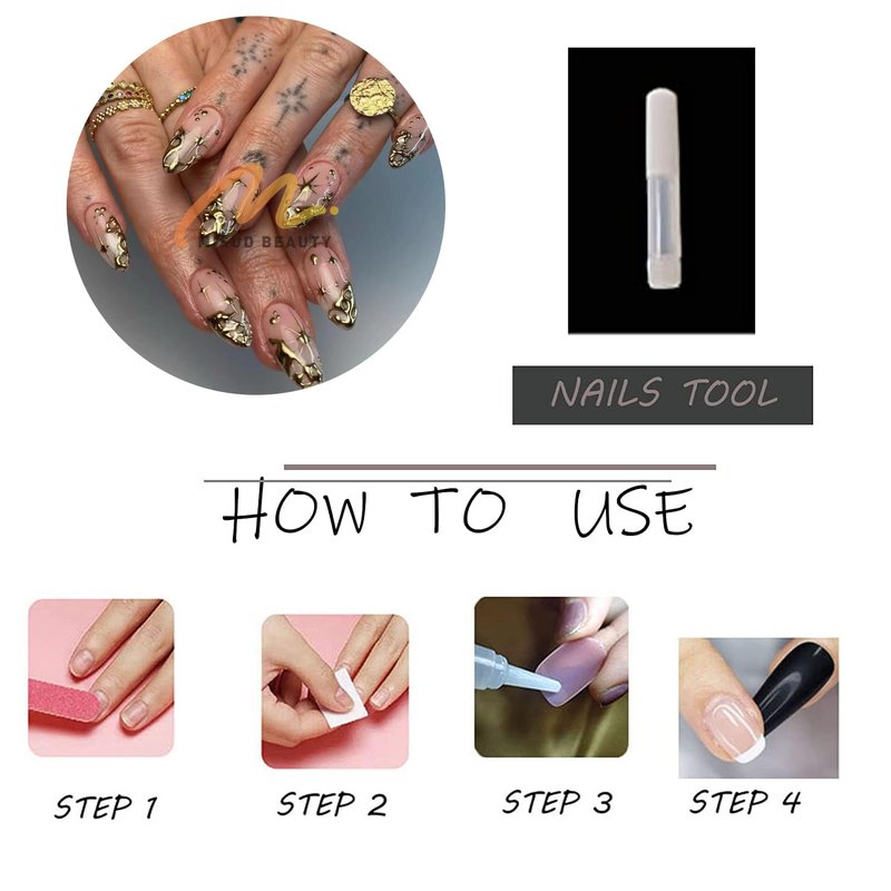 3.Select a right size of the nail, apply the glue to the back of the nail and put it on your fingernails.