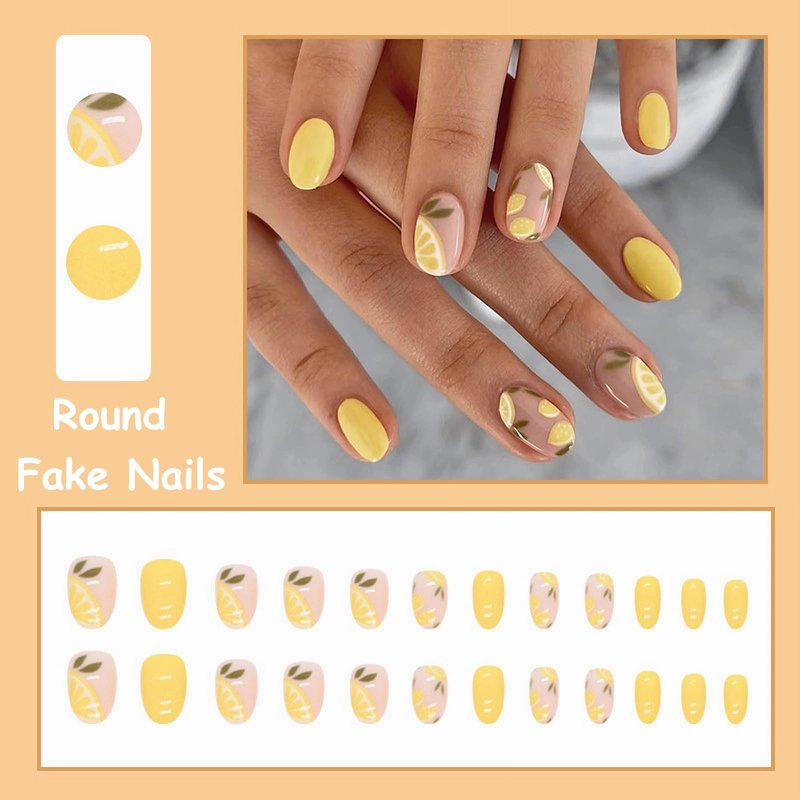 - 【Unique Design】 According to the most popular elements of the moment, these short round press on nails are designed with yellow gel and summer lemon.