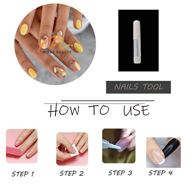 3.Select a right size of the nail, apply the glue to the back of the nail and put it on your fingernails.