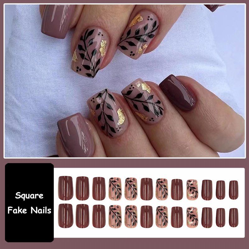 - 【Unique Design】 According to the most popular elements of the autumn moment, these short square press on nails are designed with fall brown, gold foil and leaf.