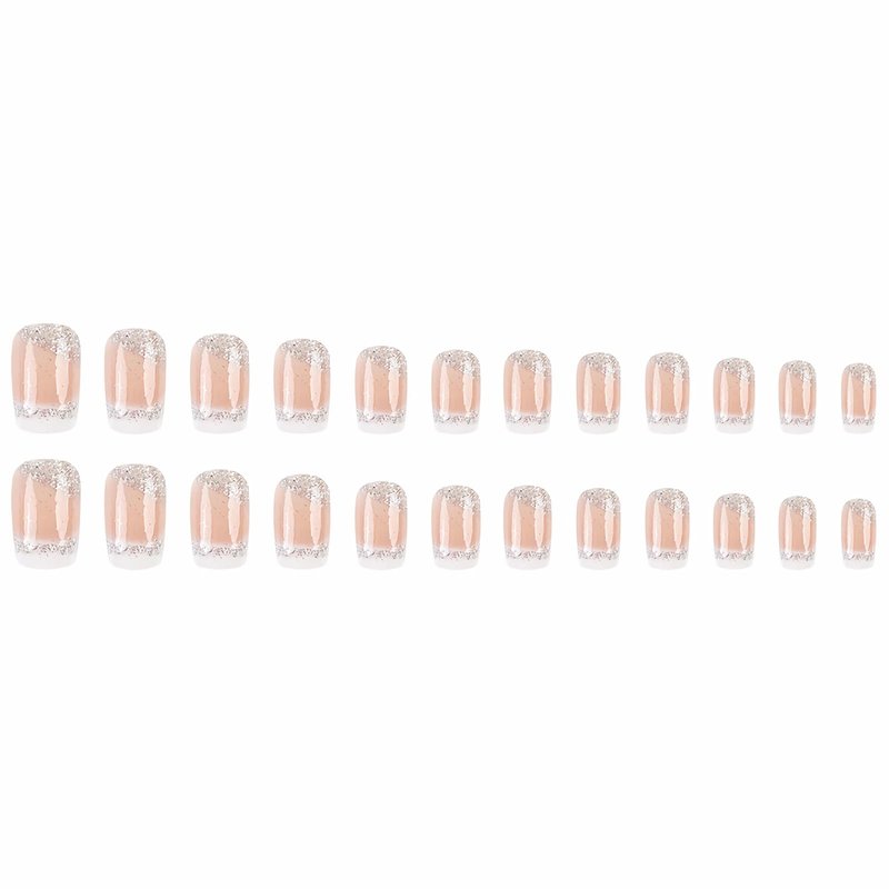 MISUD Press on Nails Short Square Fake Nails Glossy Glue on Nails Nude Ombre Acrylic Nails Squoval Artificial Nails Bling Glitter Stick on False Nails with White French Tip Design 24 pcs