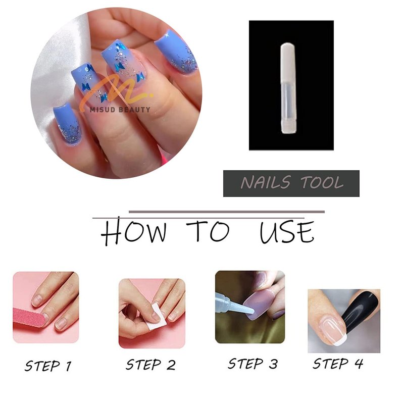 3.Select a right size of the nail, apply the glue to the back of the nail and put it on your fingernails.