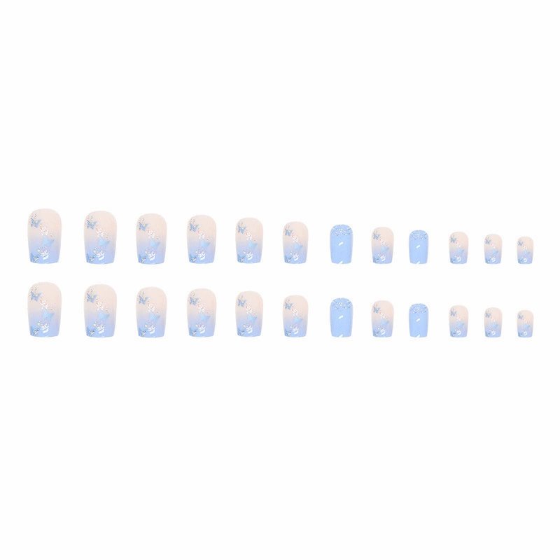 MISUD Short Square Press on Nails Squoval Fake Nails Glossy Glue on Nails Blue Gradient Acrylic Nails Spring Butterfly Artificial Nails Summer Bling Glitter Stick on False Nails with Design 24 pcs
