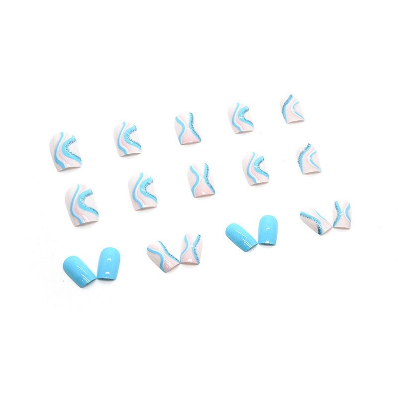 - 【Unique Design】 According to the most popular elements of the moment, these glossy square press on nails are designed with blue white wave line and sparkly glitter sequins.