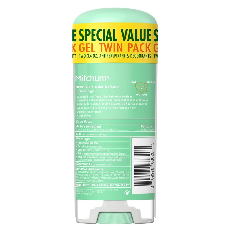 Mitchum Women's Deodorant, Gifts for Women, Stocking Stuffers, Antiperspirant Stick, Triple Odor Defense Gel, 48 Hr Protection, Shower Fresh, 3.4 Oz (Pack of 2)