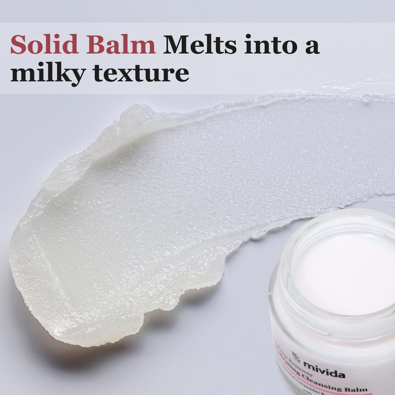 - 🌿Specially Formulated for All : mivida makeup remover balm effectively and gently remove all kinds of long-lasting makeup, including eye, lip, face makeup, and sunscreen, providing a soothing and Fresh look without any resdue. This solid cleansing balm transforms into a rich oil and then into a nourishing milky texture that rinses away effortlessly.