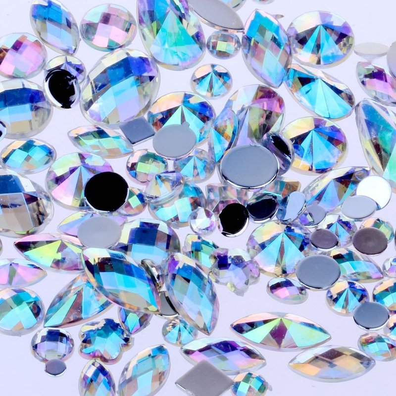 Mix Sizes 300pcs Crystal Clear AB Nail Art Rhinestones DIY Non Hotfix Flatback Acrylic Nail Stones Gems For 3D Nails Art Decorations (Clear AB)