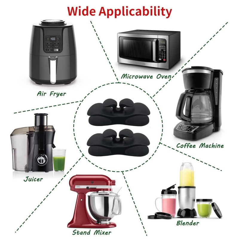 - [ Extra Gift 2 x Mixer Accessories] - Cable winder manage cords on kitchen appliances, can apply it to all kinds of kitchen equipment, such as mixer,coffee machines, blenders, air fryer, toaster, pressure cooker, juicer and more.say goodbye to cluttered wires.NOTE !!! After installation, let it stand for 24 hours, the viscosity will reach the best.