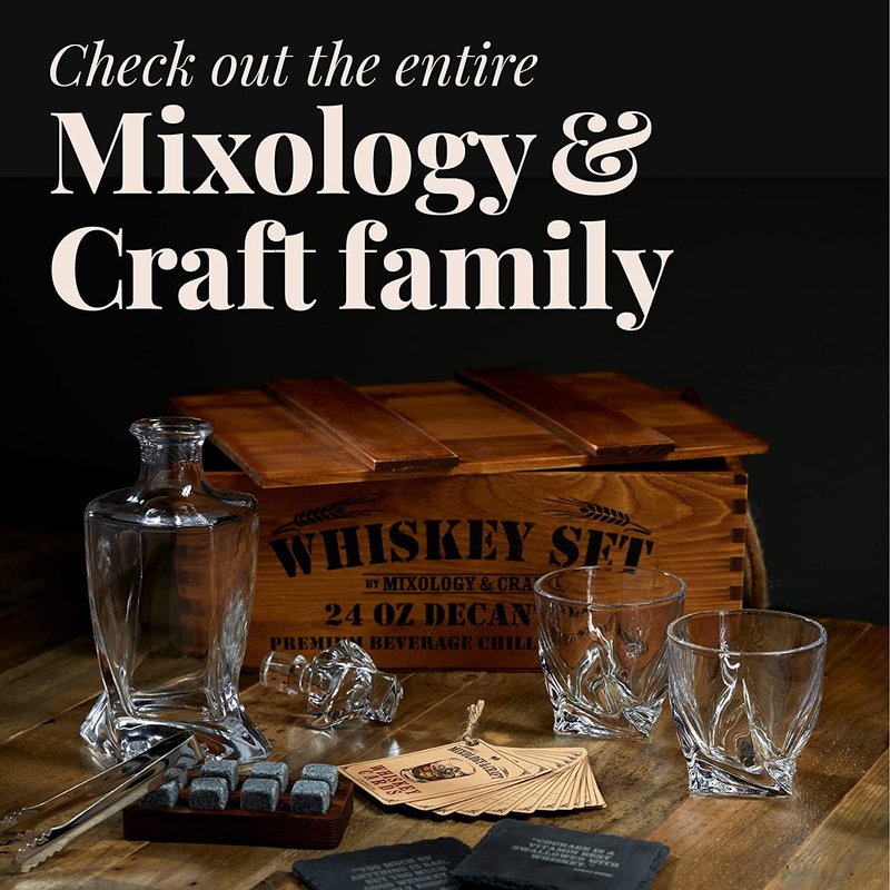 Mixology & Craft Whiskey Stones - Cube-Shaped Granite Chilling Whiskey Rocks Set of 6, Whiskey Gifts for Men and Christmas Stocking Stuffers - Dark Granite
