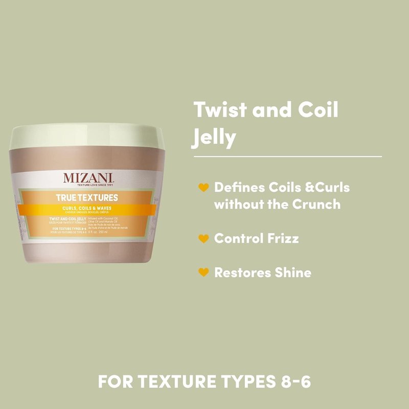 Mizani True Textures Twist and Coil Jelly | Touchable Texture | With Coconut Oil | Paraben & Silicone-Free | For Curly Hair | 8 Oz