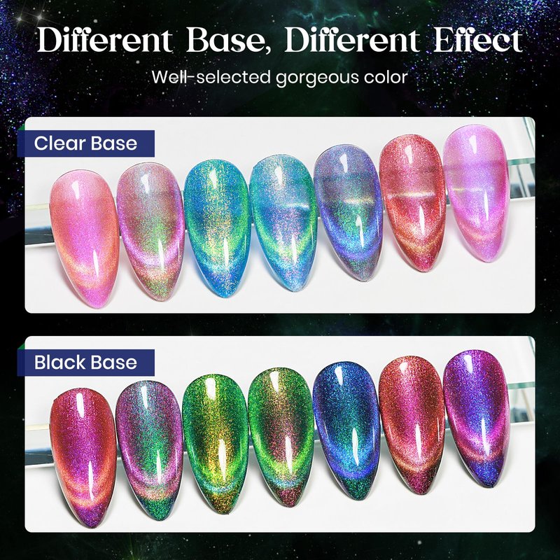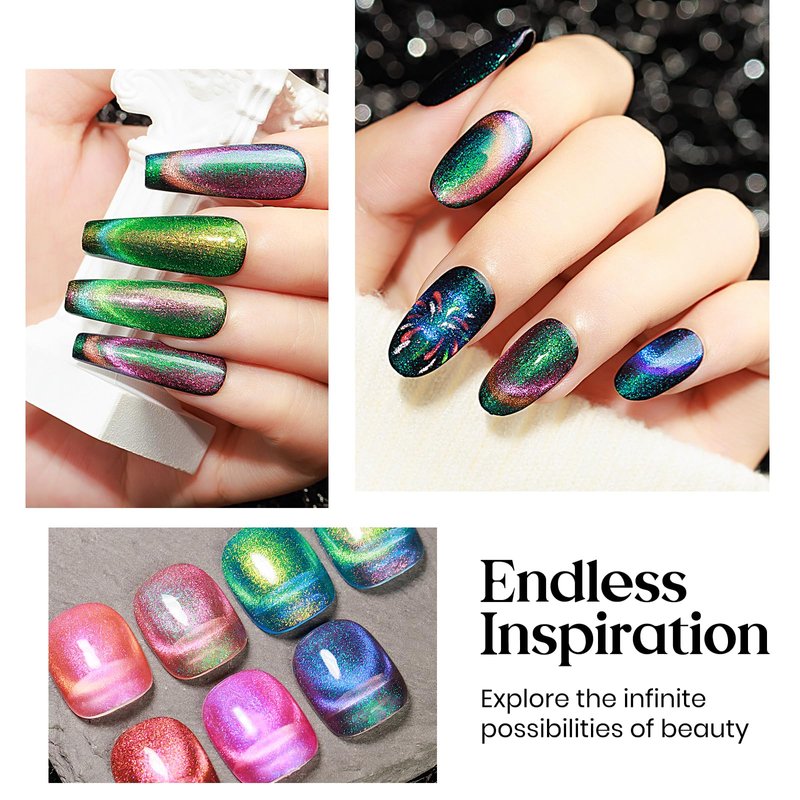- UPGRADED CAT EYE POWDER: Ultra fine dual color powder offer multiple bright effect. You can apply a single cat eye layer, or apply a black base to create more obvious cat eye nails, every style will Suprise you!