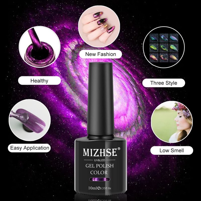 - Special 9D Design - New Style: Luxury gel nail polish gift for ladies. Made from natural resin, healthy ingredients, low smell, non-toxic. MIZHSE cat eye gel nail polish can be a great choice as a nail gift on festivals such as birthdays, Mother's Day, Valentine's Day, Christmas, New Year and so on.