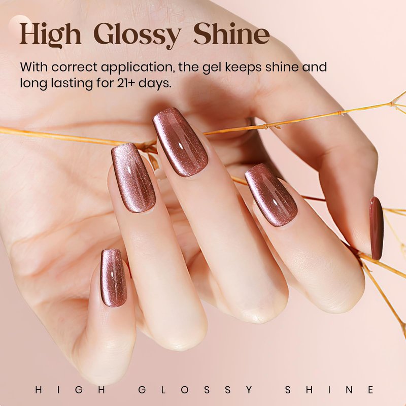 - 【Maillard Style Magnetic Gel Polish】Crystalline color cat eye effect and holographic shimmer galaxy effect, bring you a glossy shine finish. To feel the shift of cat eye effect under different lights or angles. The Maillard color is a must-have for all fashion enthusiasts.