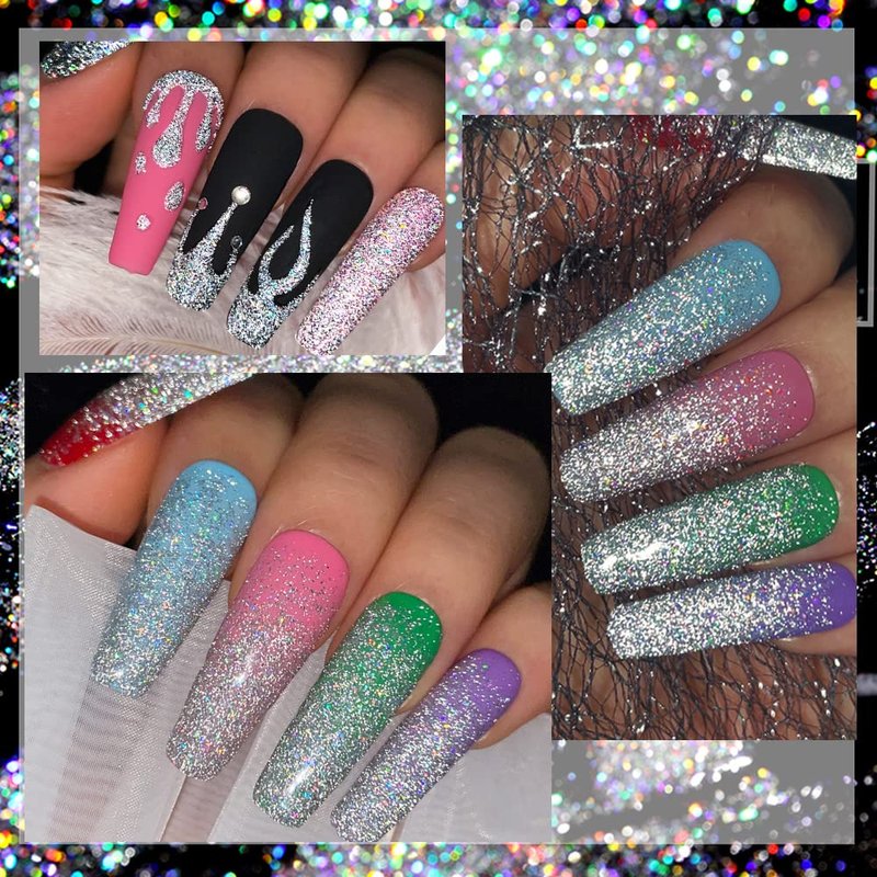 - 【Universal Reflective Glitter Gel】This glitter gel nail polish can be used with any color base. Way 1: Do a gradient effect, Way 2: Fully painted.