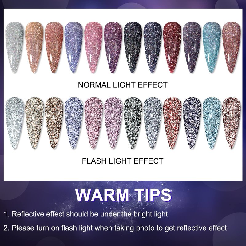 - 2 DIFFERENT CHARMING EFFECT: Natural Light Normal Effect & Flashing Disco Effect bring you extraordinary experience. Reflective Diamond Gel with dazzling light shines into eyes, making you the most eye-catching in the crowd!