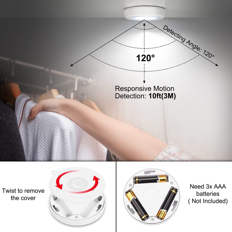 - 💗Battery Operated - Powered by 3PCS AAA batteries (Not Included) for cordless installation, to provide you with illumination in areas that have limited or no access to electricity. Note: Batteries that are qualified through the national testing authority are recommended