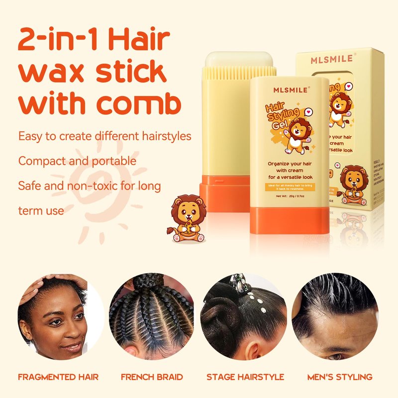 MLSMILE Hair Wax Stick for Baby Styling, 2-in-1 Design with Built-in Comb, Slick,for Kids Waxes, Moisturizing, Non-Greasy, Easy to Use, Compact and Portable