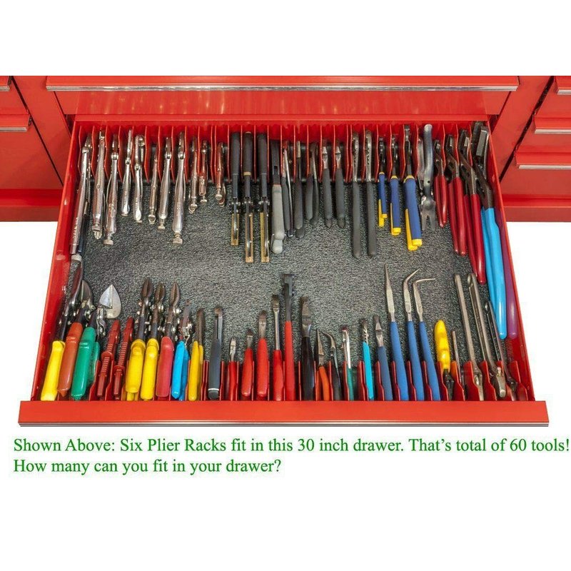 - SAFE PLIER DRAWER ORGANIZER – Made with premium quality materials in the USA, our pliers organizer for toolbox is fuel and solvent resistant. Pliers rack & organizer for tool drawer storage is extremely durable and can withstand everyday wear/tear.