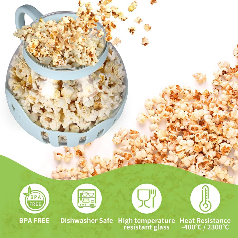 - GLASS POPCORN POPPER: The M MUGOOLER microwave popcorn maker is made of high temperature resistant borosilicate glass that is BPA free and can withstand the high temperatures of the microwave to make delicious popcorn quickly and easily.