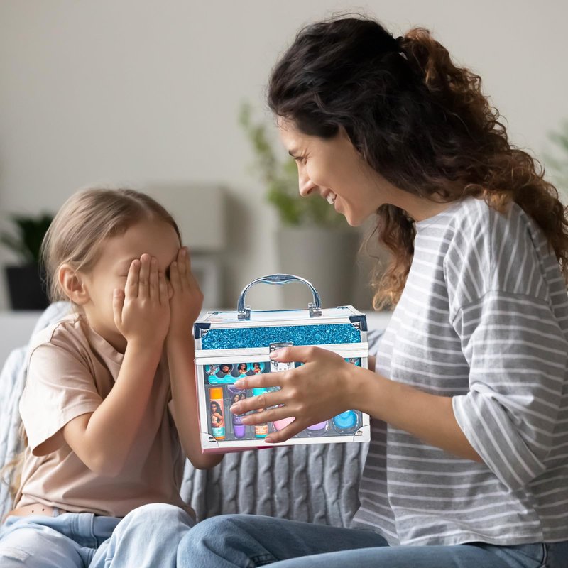 Bring the fun and wonder of The Little Mermaid home with this fun-filled cosmetic train case. This amazing makeover set contains everything she will need to create a dazzling beauty look. With multiple polish colors, lip balms and lip glosses, eye and cheek shimmers and more, she will have the time of her life glamming up. And it is a win for all parents too because our products are carefully crafted with no harsh chemicals, is water-based, and just plain easy and fun to use. You will love it just as much and she does. About Us Girls like to dress-up, emulate their role models and explore their personal styles. TownleyGirl creates health and beauty products that both girls and their parents will love. Whether they’re using sheer lip gloss, peelable nail polish or cute hair brushes, girls will have a fantastic time dressing up and cleaning up. Plus, parents can rest easy knowing that TownleyGirl’s products include non-toxic ingredients and are budget friendly. TownleyGirl. Sparkle, shine and dream big! Since 1952.