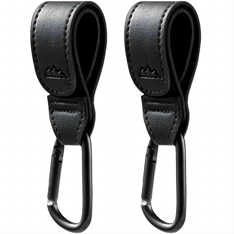 MoBearer Baby Stroller Hooks for Hanging Diaper Bags Multipurpose Mommy Hooks for Grocery Shopping Bags,Stroller Clips Leather Straps 2 Pack (Black)