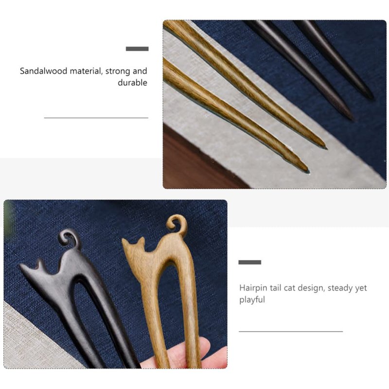 Well made of wood, safe and durable, smooth to protect hair, simple and elegant. The size is perfectly suitable for women or teens, easy to clip on even thick hair, can safely hold and decorate your bun hair well. Cat carved design is beautiful and chic.